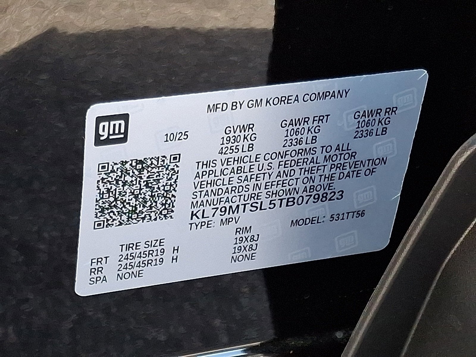 VIN: KL79MTSL5TB079823