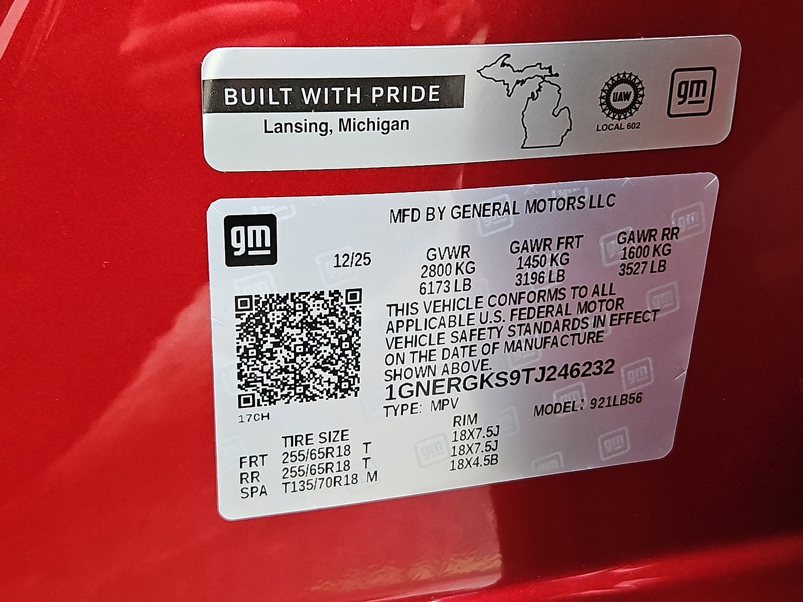 VIN: 1GNERGKS9TJ246232