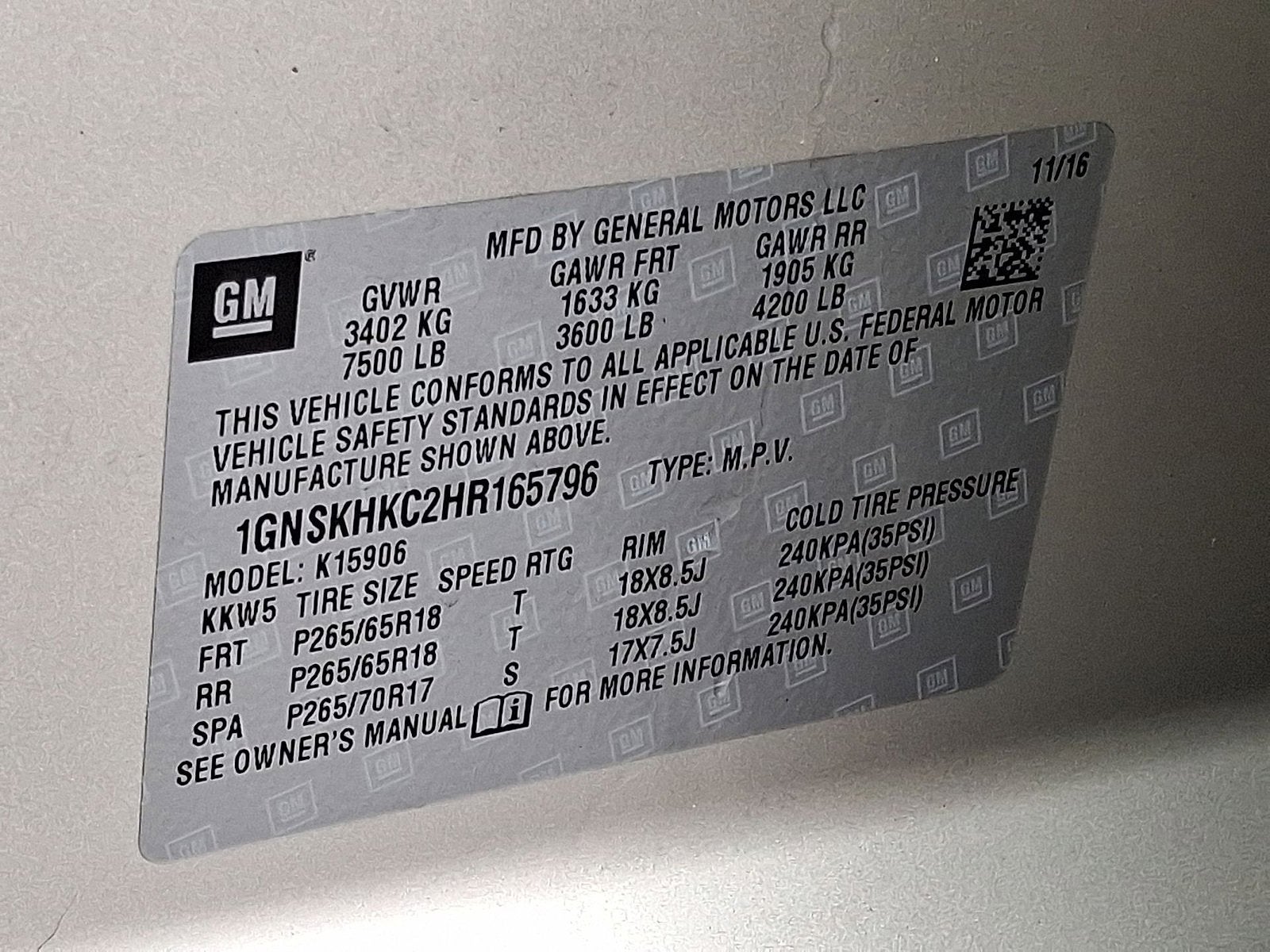 1GNSKHKC2HR165796